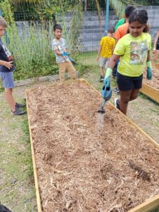 “Une dame de Formaterra nous a expliqué comment faire des plantes. Pour planter, on a utilisé des transplantoirs. On a fait des rigoles. On a semé des graines de carottes et de radis. On a arrosé les graines à la fin.” LB