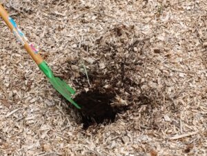 “J’ai utilisé une bêche et un transplantoir. On a semé des graines de carottes et des graines de radis. ” Adixia