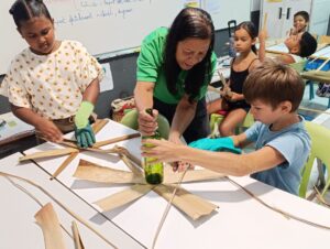 “Madame Morin nous a expliqué que les produits chimiques sont dangereux pour notre santé. On a fait des godets en feuilles de vacoa. Et on a mis de la terre et des plantes à l’intérieur. Après on a planté des salades et des laitues”. ELINA