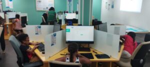 Tous les vendredis matin, les ce1 vont à la mediatheque pour apprendre à utiliser un ordinateur. Ils sont super sérieux !