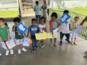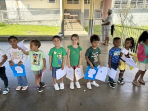 Nous avons reçu des lunettes de soleil ainsi que des casquettes à prêter aux élèves pour qu’il puisse se protéger pendant les récréations. Ils sont très fiers d’expliquer aux autres qu’il faut se protéger du soleil.