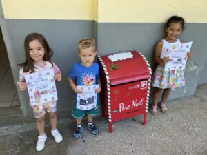 Nous avons fait notre lettre pour le Père Noël (vous aurez une copie dans le classeur de vie!!!) et l’avons déposé dans la boîte aux lettres spécial Noël. Mme Maquet est le lutin de cette boîte aux lettres qui transmettra les courriers au Père Noël.