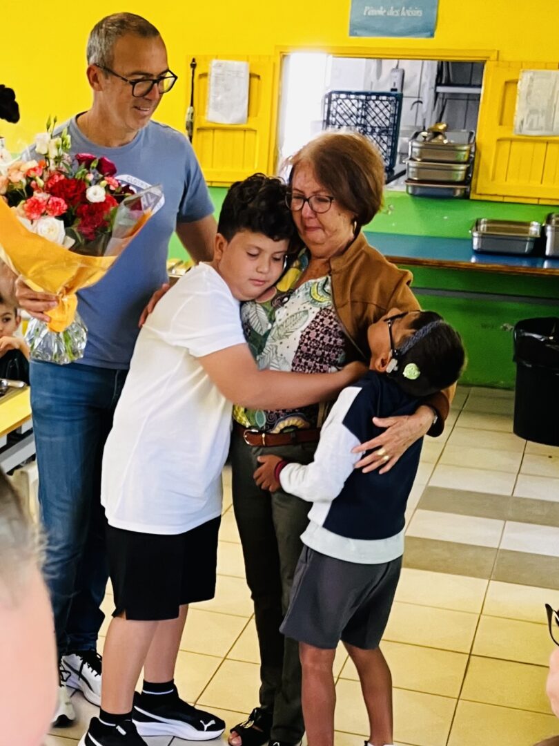 Après plus de 20 ans dans l’école, Sylvienne, agent communale et responsable de site, prend une retraite bien méritée. Toute l’école lui a dit merci et au revoir, hier midi, et quelques larmes ont été versées … Merci pour tout, Sylvienne et bonne retraite à toi !
