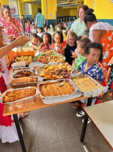Notre cour d’école s’est égayée des beaux habits bleus des élèves.