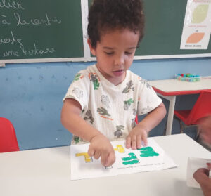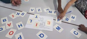 Les élèves devaient identifier les six lettres parmi toutes les lettres de l’alphabet. Puis, ils devaient les nommer et prendre la lettre demandée.