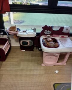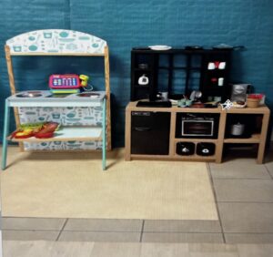 – le coin des poupées : on y range les poupées, le berceau, les vêtements…