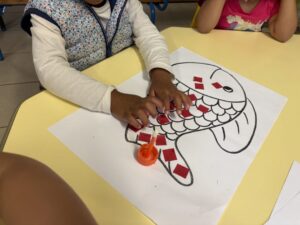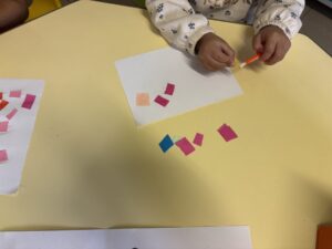 J’apprends à coller des morceaux de papier.