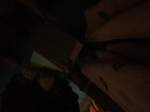 Nous sommes allés dans le cagibi, il y faisait très sombre mais il y avait encore une peu de lumière : on pouvait encore voir les couleurs.